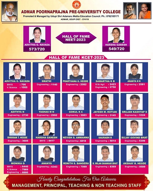 II PUC State Board Exam – Commerce: 2022-23 April 23, 2023 by Nataraj Gopadi Hall of Fame SCIENCE-NEET 2023 & KCET 2023 ACHIEVERS